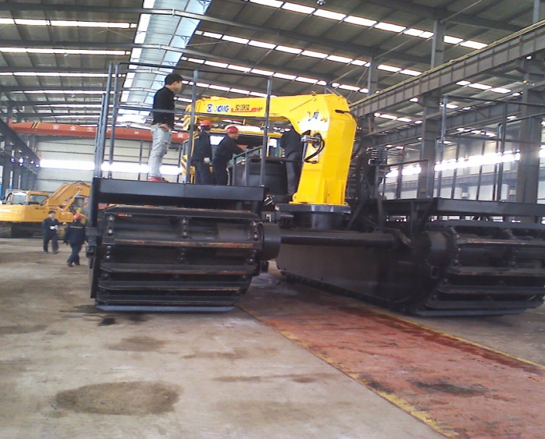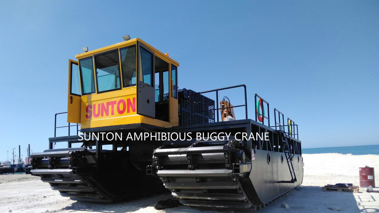 SLC35水陆两用运输设备是由浮箱式行走装置、载货平台及随车吊、液压绞车等作业工具组成的全液压履带式水陆两用运输机器。包括动力系统、液压系统、操作和监控系统、行走系统、载货和作业系统等,从前向后依次布置为液压绞车、驾驶室、动力舱、随车吊、两侧为载荷平台。