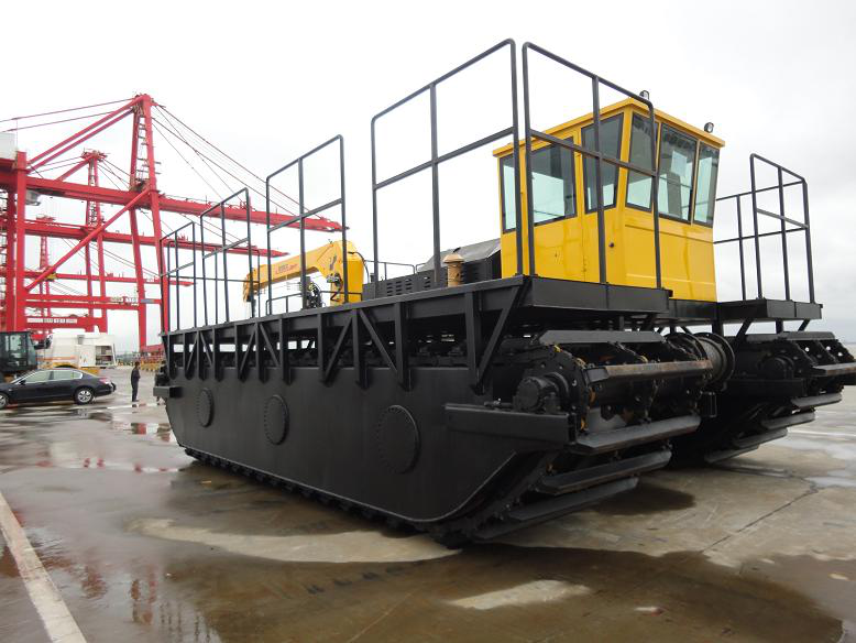 SLC35 水陆两用运输船的行走装置采用双体船式浮箱结构履带架及密封的箱形履带板,超低接地比压,能在松软泥泞的湿地、滩涂、沼泽地带及泥沼中作业和行驶,也可以水上浮航,保证能在水上安全游弋。 水陆两用运输船是属于交通运输、渔业作业的综合机具,克服了目前汽车、拖拉机仅能在陆地作业,船仅能在水上作业的弊端。该船结构简单,造价经济,品质优良。